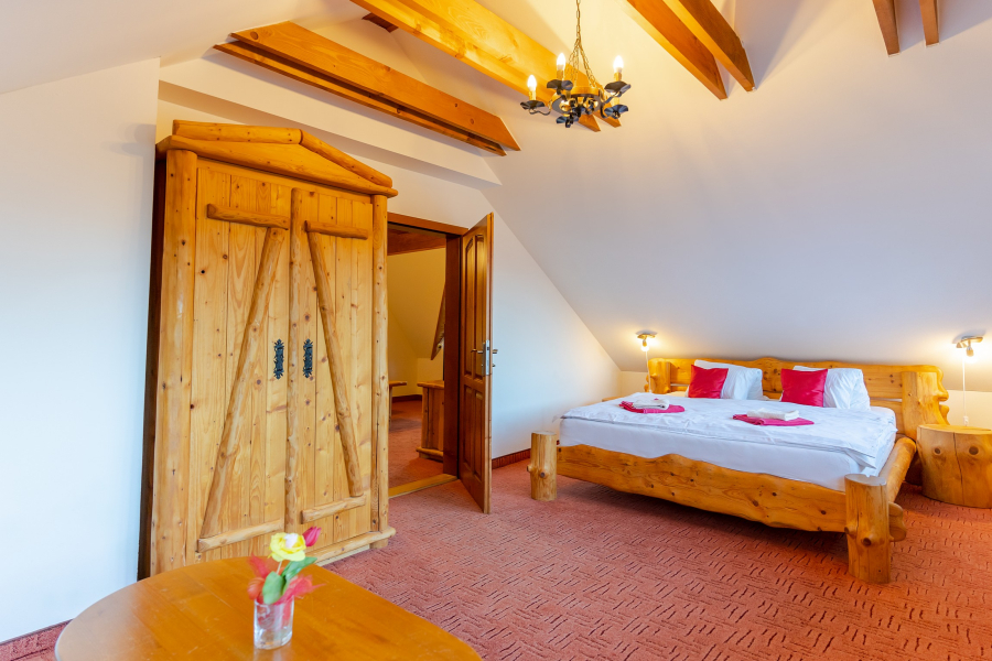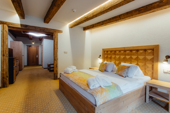 For families with children, or groups of friends or colleagues, we have spacious rooms available, where there is a bedroom and a living room. The two-bedroom apartment with a beautiful view of Baranec and the one-bedroom Superior apartments with a balcony have a spacious terrace with a view of nature and provide comfort for an unforgettable experience in the beautiful Jánská dolina. Superior rooms are ideal for romantic stays. Wellness Rusnácka baňa is free for all guests.