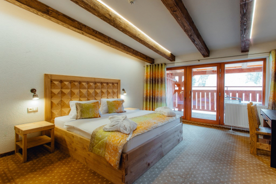 TIP pre Rodiny s deťmi. Kompletne prerobené a luxusne vybavené apartmány zaručia relax na vlastnej terase s nádherným výhľadom, ale najmä plnohodnotný oddych pre celú rodinu alebo skupinu priateľov – čo viac si priať? Plne vybavené apartmány sú zárukou vašej dokonalej dovolenky. Veľká manželská posteľ v spálňovej časti a rozťahovací gauč v obývačkovej časti izby. Izby nie sú oddelené dverami.